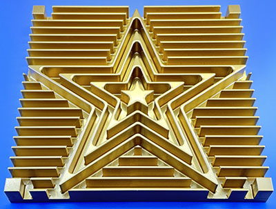 中央に星をアレンジしたもので、表面処理は金色のアルマイトを施しています。