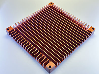 通常のヒートシンクとあまり変わらないように思われますが、一体加工の削り出しで縦と横のフィンが特徴です。色は落ち着きのあるワインレッドです。