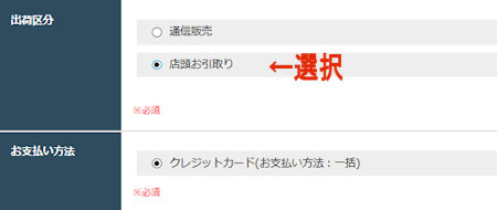 ご来店可能なお客様には当サイトでご注文及びクレジットカード決済をしていただいた上で、弊社店頭にお越しいただいて商品お引取りができます。